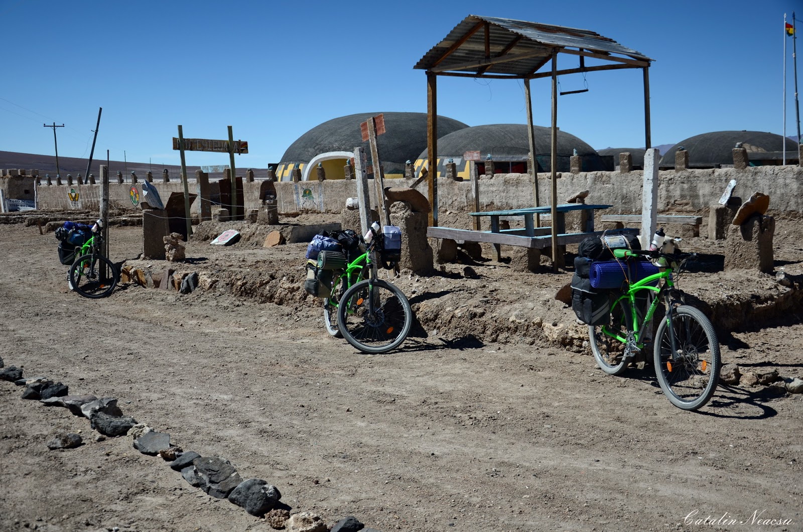 Jumătate din drum salar cu drum precum asfaltul, jumătate cu nisip ( mai mult împins la bicle ) şi cu vânt tare, din faţă, totată ziua.